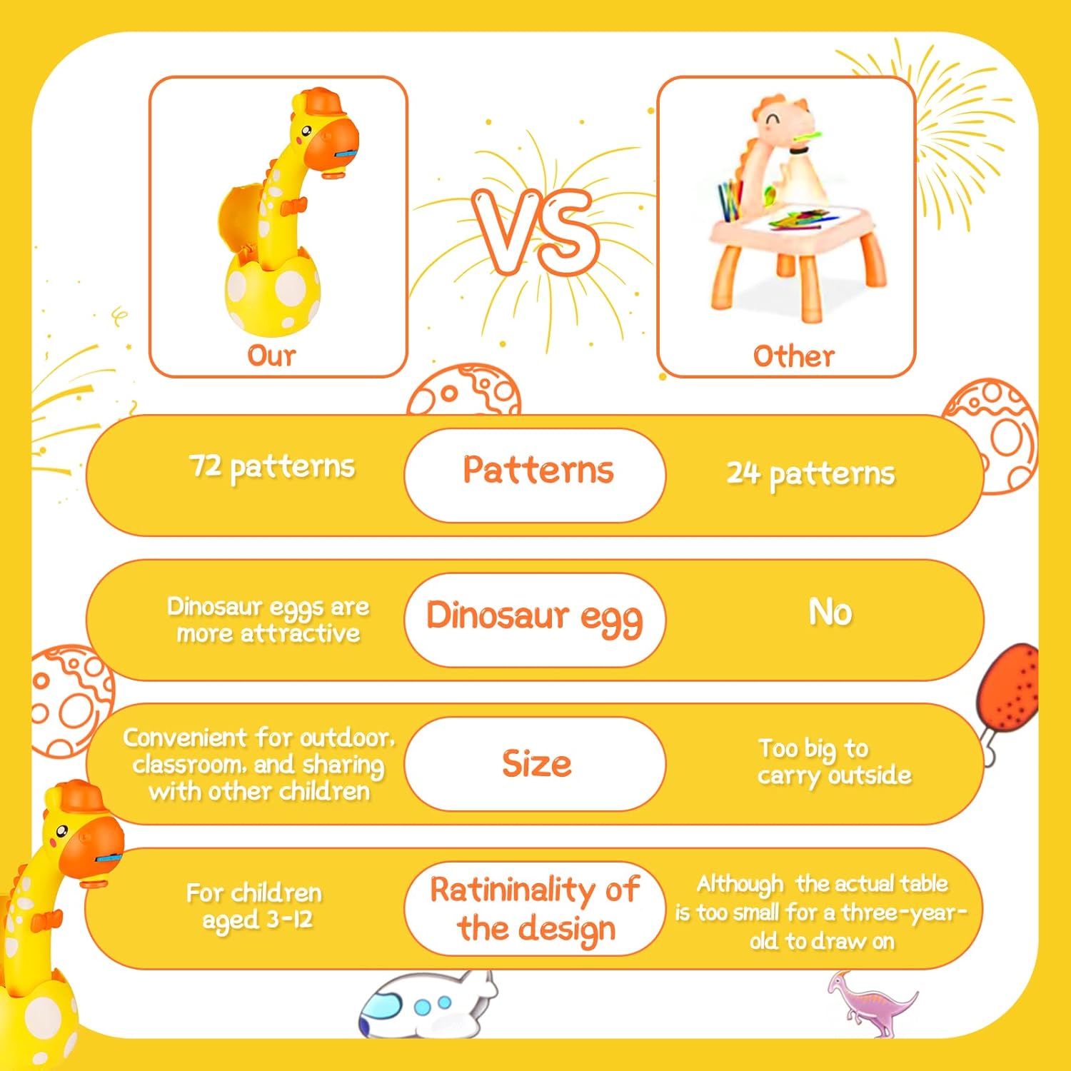 A fun and educational drawing projector that helps kids trace and create artwork with ease. With 72 stencils, 12 colorful markers, and an included art book, this set boosts creativity, confidence, and fine motor skills while making learning to draw simple and enjoyable.